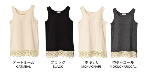 キャミソール以外にも、タンクトップ、Tシャツ、ワンピースなどなど