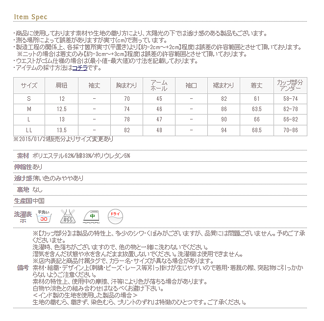 商品ページの中ほどに、平置き計測による実寸が載っています。